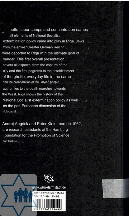 Pages 520 Archive 1005 Language German Author in original language Angrick Andrei, Klein Peter Name of book in original language Die "Endlosung" in Riga: Ausbeutung und Vernichtung 1941-1944
