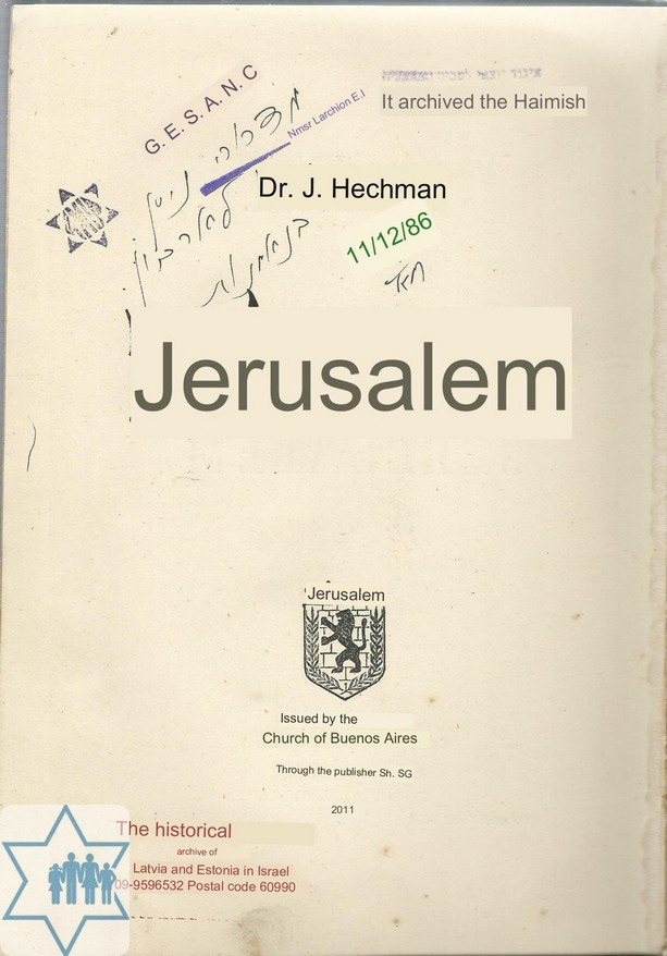 Pages 325 Place Buenos aires Year 1950 Archive 102 , 448 Language Yiddish Author in original language ד"ר יעקב העלמאן Name of book in original language ירושלים