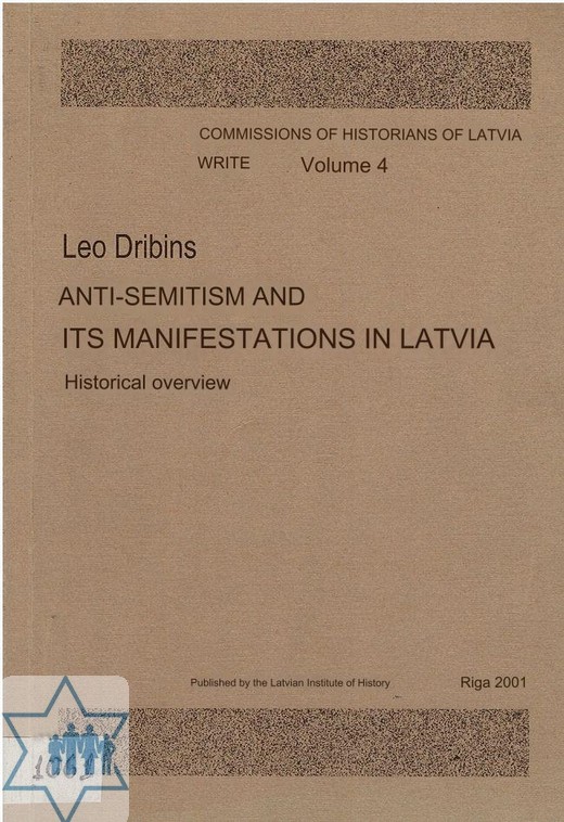 Pages 184 Place Riga Year 2001 Archive 1061 Language Latvian Author in original language Dribins Leo Name of book in original language Antisemitisms un ta izpausmes Latvia