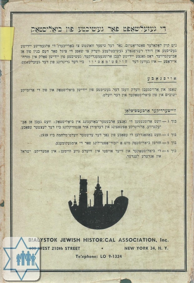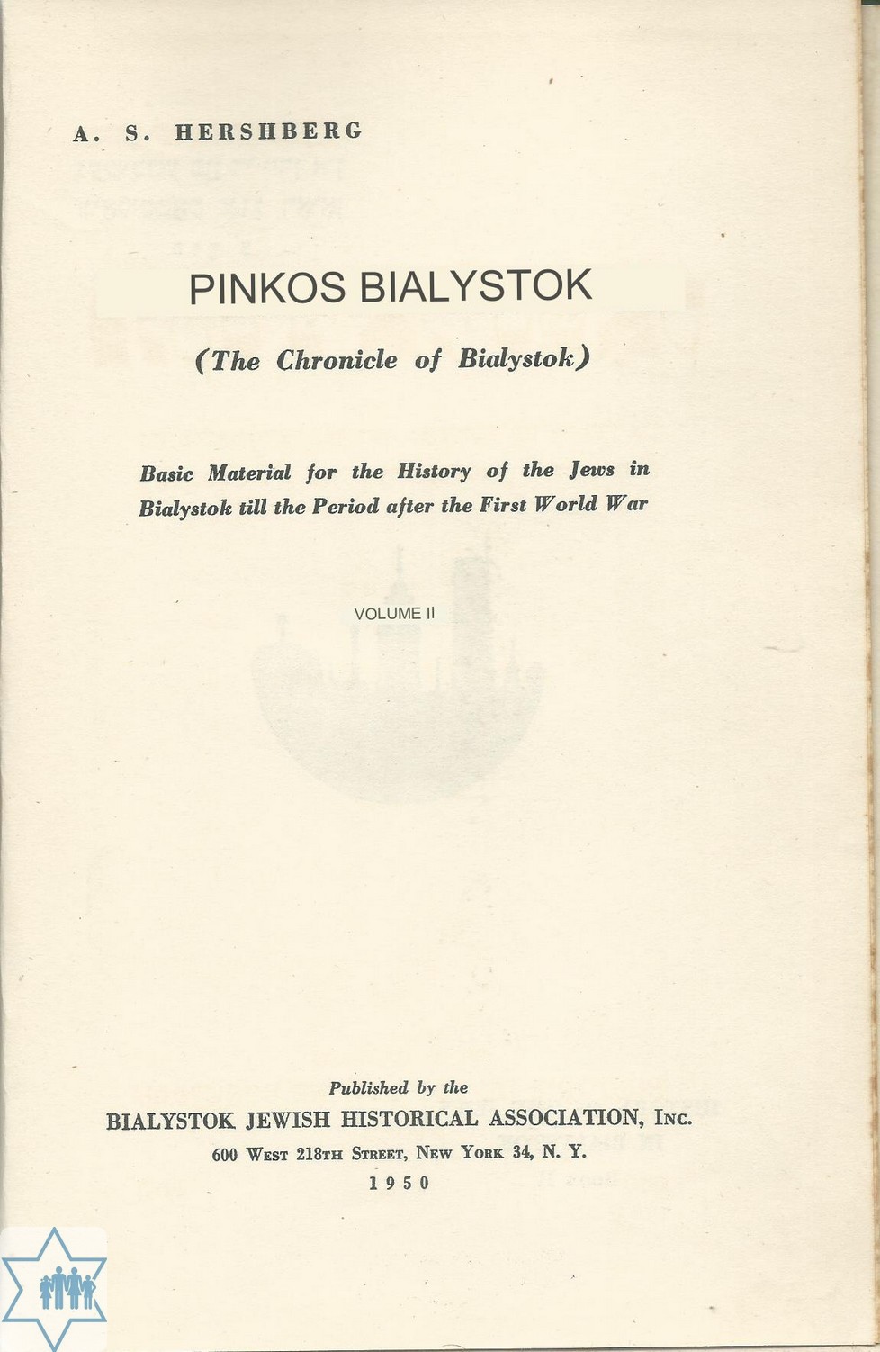 Pages 380 Place N.Y. Year 1950 Archive 108 Language Yiddish Author in original language הערשבערג אברהם שמואל Name of book in original language פנקס ביאליסטוק
