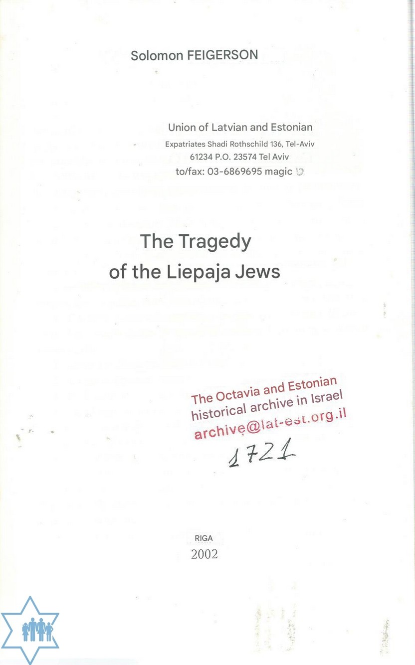 Tragedy of the Liepaja Jews / Feigelson Solomon