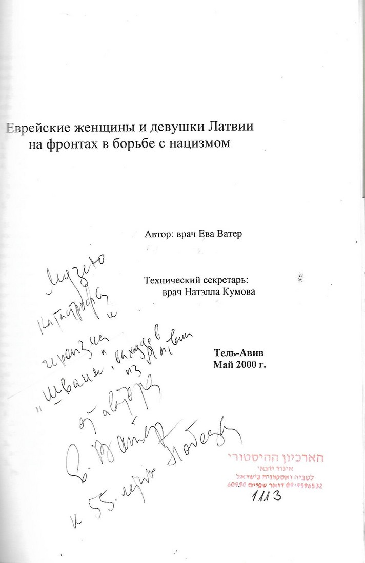 Name of book in original language Еврейские женщины Латвии на фронтах в борьбе с нацизмом