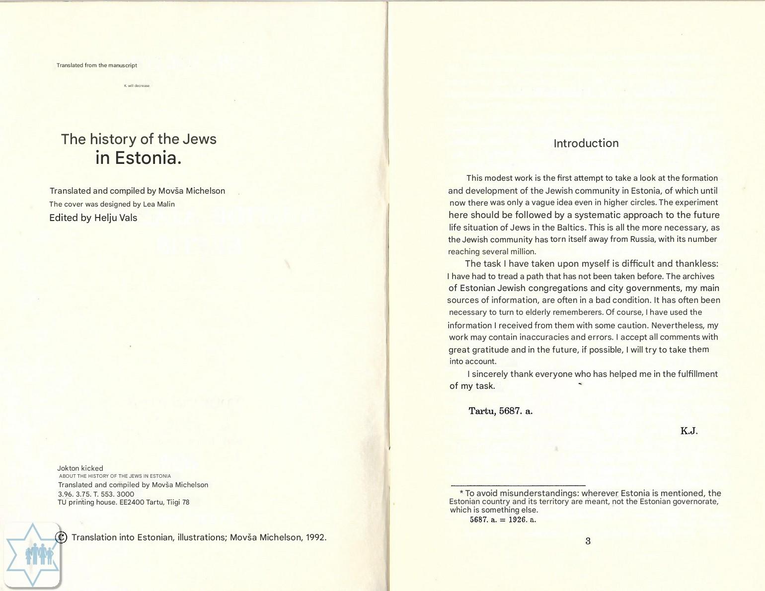 Book ArchiveJewish history in Estonia / Jokton Kopl