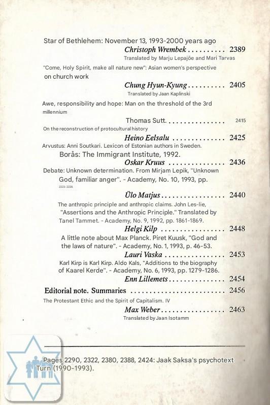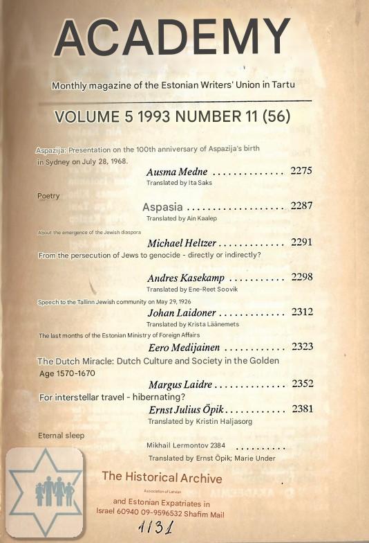Place Tartu Year 1993 Archive 1131 Language Estonian Author in original language Chernov Igor Name of book in original language Magazine "Akadeemia" Number 11 1993