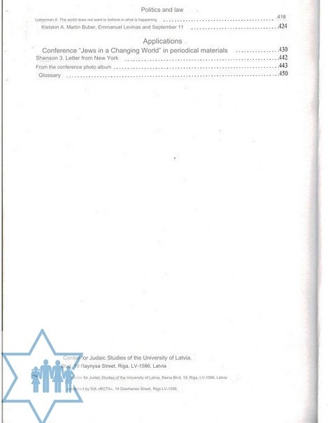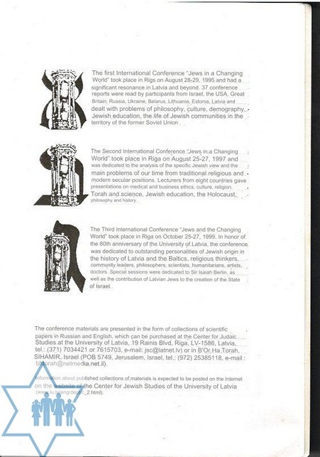 Pages 466 Place Riga Year 2002 Archive 864 , 1041 , 1164 Language Russian Author in original language Брановер, Фербер – редакт. Name of book in original language Евреи в меняющемся мире. Том 4 Comments