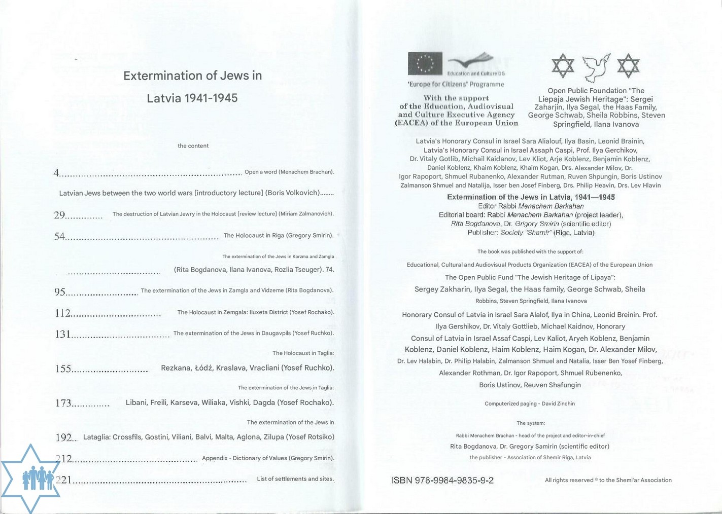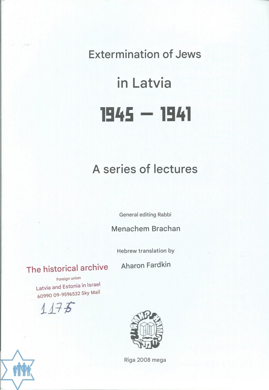 Pages 264 Place Riga Year 2008 Archive 1175 ; 1696 Language Hebrew Editor in original language הרב מנחם ברכהן Name of book in original language השמדת יהודים בלטביה 1945-1941