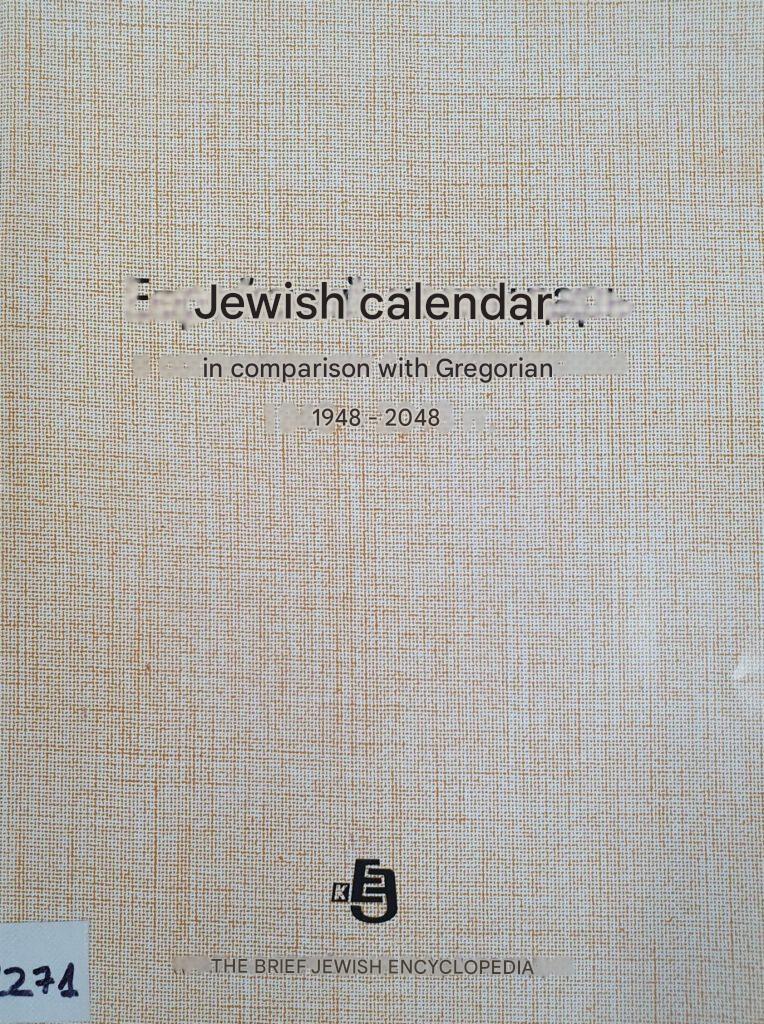 Pages Place Jerusalem Year 1999 Archive 1271 Language Russian Author in original language Name of book in original language Еврейский календарь в сопоставлении с григорианским 1948-2048 Comments