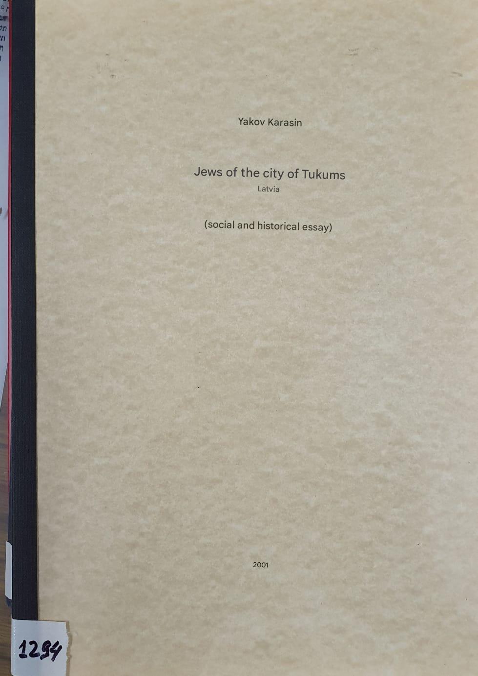 Pages 140 Place Latvia Year 2001 Archive 1294 ; 1483 Language Russian Author in original language Карасин Яков Name of book in original language Евреи города Тукумс Comments