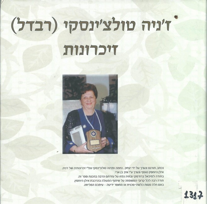 Place Year 2012 Archive 1317 Language Russian/Heb Author in original language Тульчинская (Равдаль) Женя Name of book in original language Воспоминания