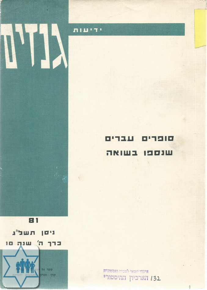 Pages 445 Place Year 1981 Archive 132 Language Hebrew Author in original language אוסטרזצר ישראל Name of book in original language סופרים עברים שנספו בשואה Comments Also on the Murder of Dubnow in Riga