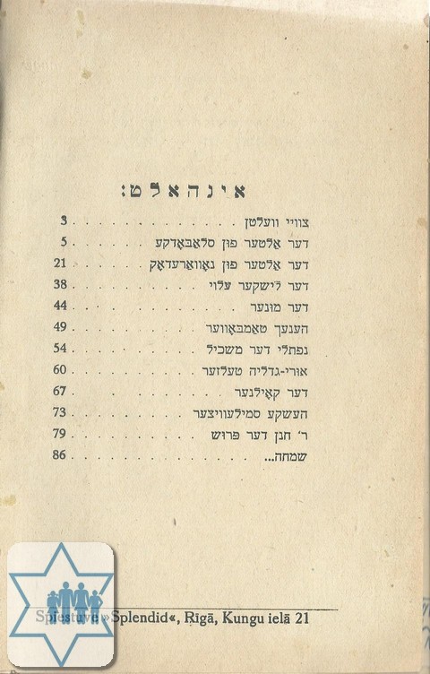 Pages 91 Place Riga Year 1936 Archive 135 Language Yiddish Author in original language .גערצ מ Name of book in original language מוסרניקעס