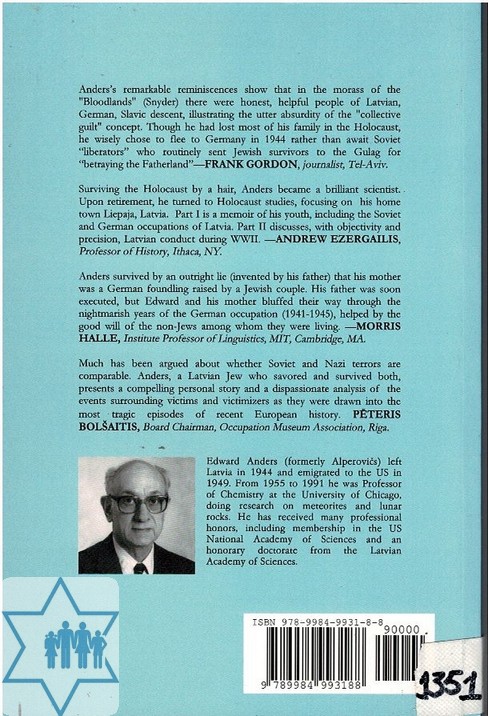Pages 204 Place Riga Year 2010 Archive 1351 Language English Author in original language Anders Edward Name of book in original language Amidst Latvians During the Holocaust Comments Office – Bookcase # 19