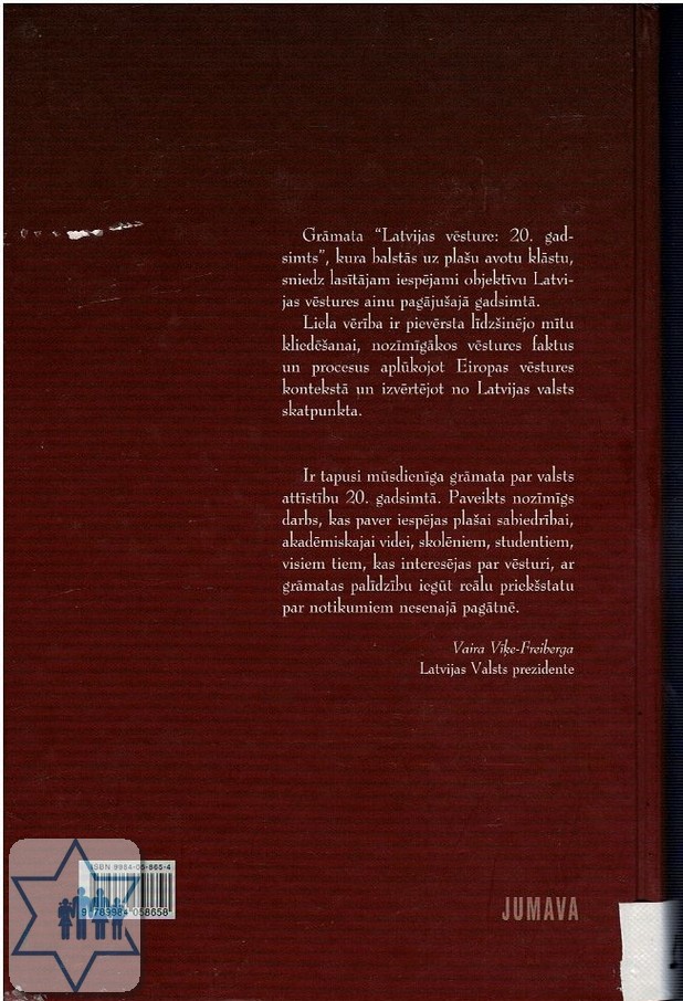 Pages 444 Place Jumava Year 2005 Archive 1391 Language Latvian Author in original language Autoru komanda Name of book in original language Latvijas vēsture – 20. gadsimts Comments Office – Bookcase # 19