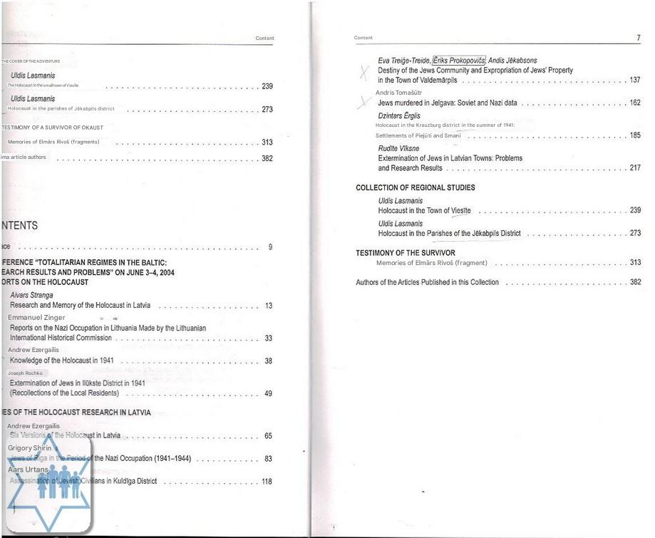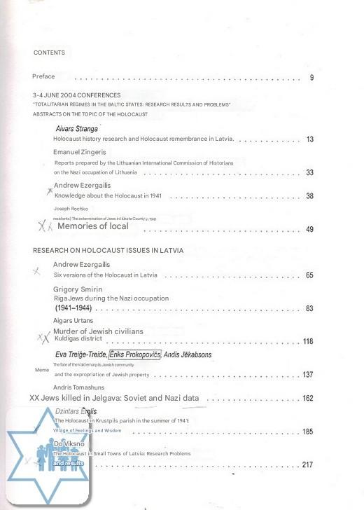 Pages 383 Place Riga Year 2006 Archive 1392 , 1397 Language Latvian Author in original language Latvijas Vēsturnieku komisijas raksti Name of book in original language Holokausts Latvijā 18.sējums Comments Office – Bookcase # 19