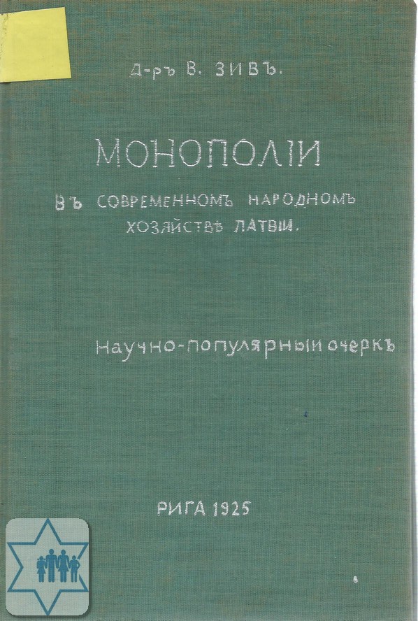 Pages 16 Place Riga Year 1925 Archive 150 , 167 Language Russian Author in original language Зив В. Др. Name of book in original language Монополии в Латвии
