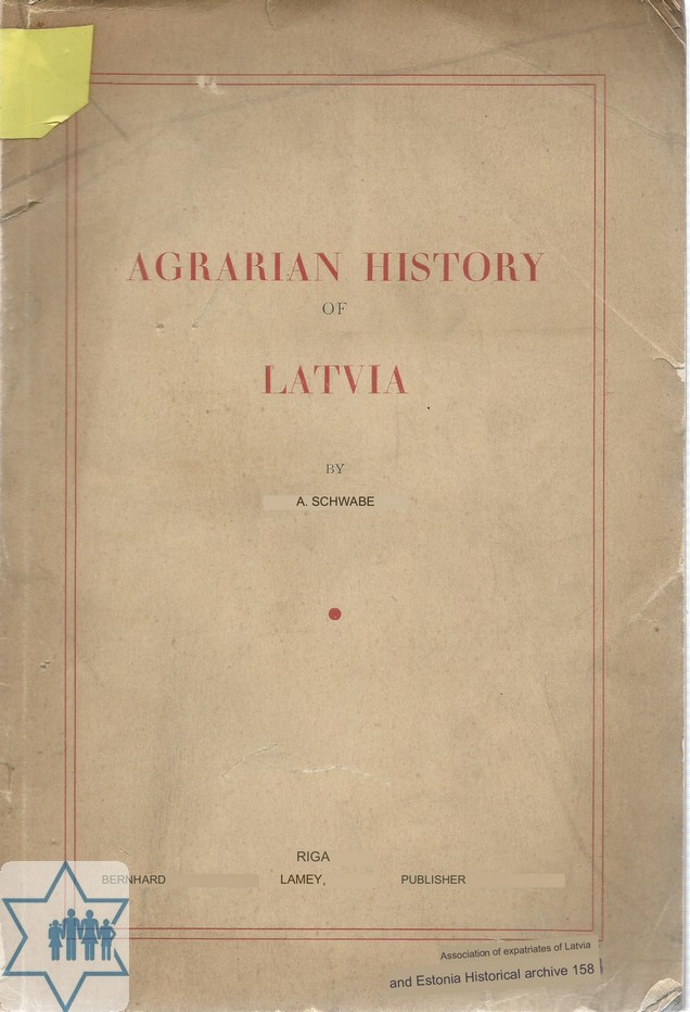 Pages 165 Place Riga Year Archive 158 Language English Author in original language Shwabe A. Name of book in original language Agrarian History of Latvia