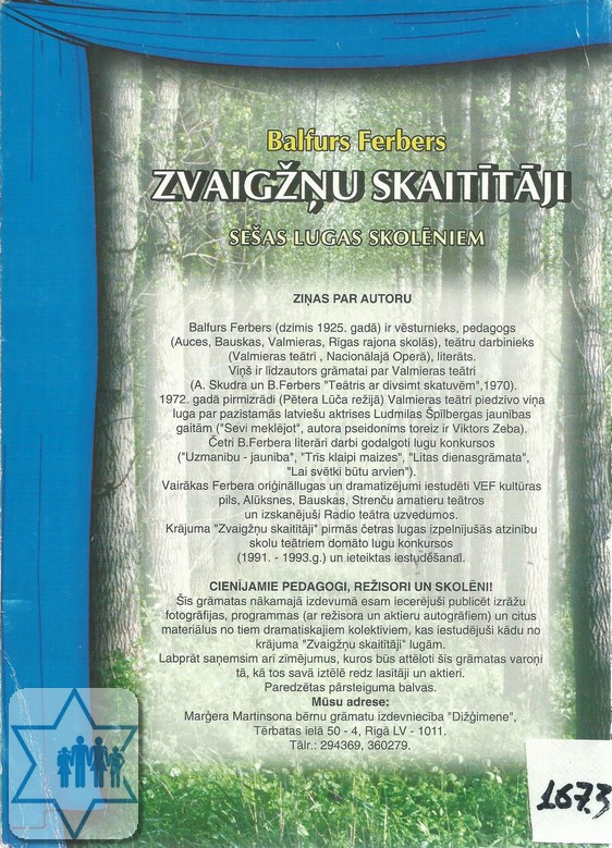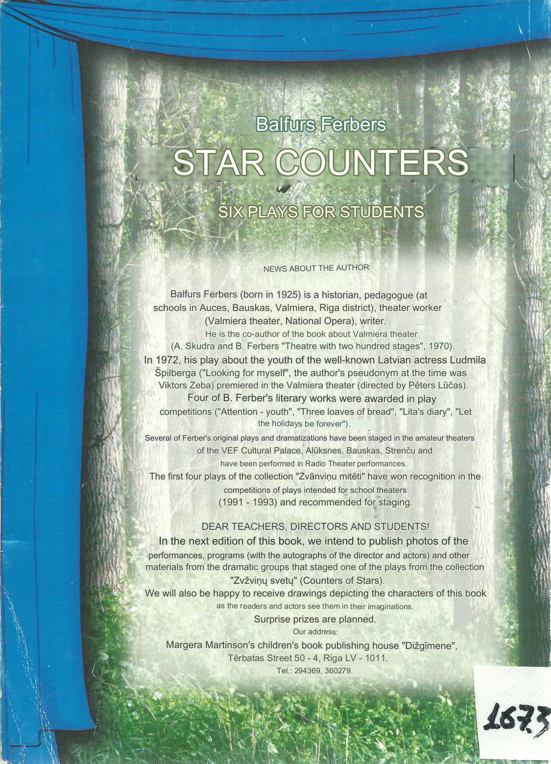 Pages 269 Place Riga Year 1997 Archive 1673 Language Latvian Author in original language Ferbers Balfurs Name of book in original language Zvaigžņu skaitītāji