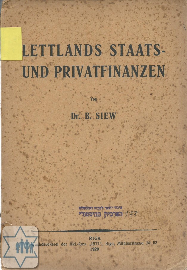 Book Archive.Lettlands Staats-und Privatfinanzen / Siev B. Dr