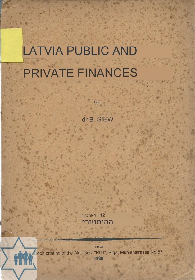 Pages 158 Place Riga Year 1929 Archive 177 Language German Author in original language Siev Dr.B. Name of book in original language Lettlands Staats-und Privatfinanzen Comments Economy