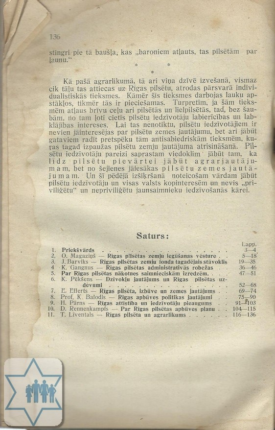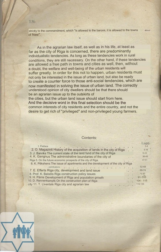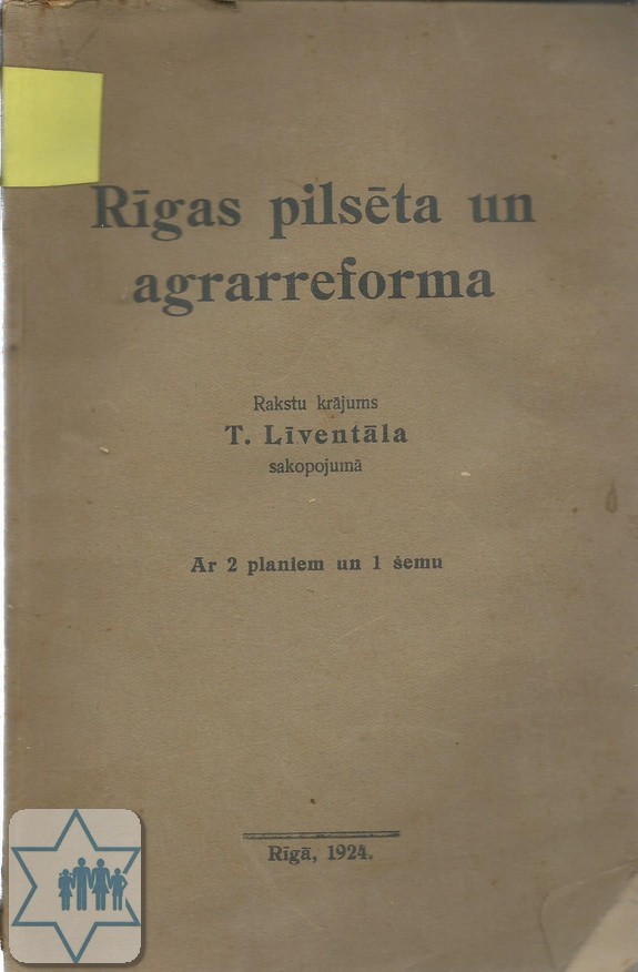 Pages 136 Place Riga Year 1924 Archive 186 Language Latvian Author in original language Liventala T. Name of book in original language Rigas Pilseta un Agrarreforma