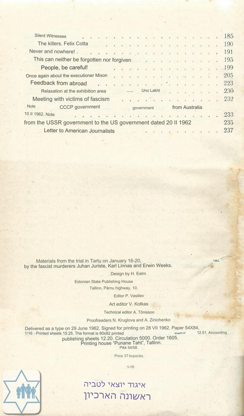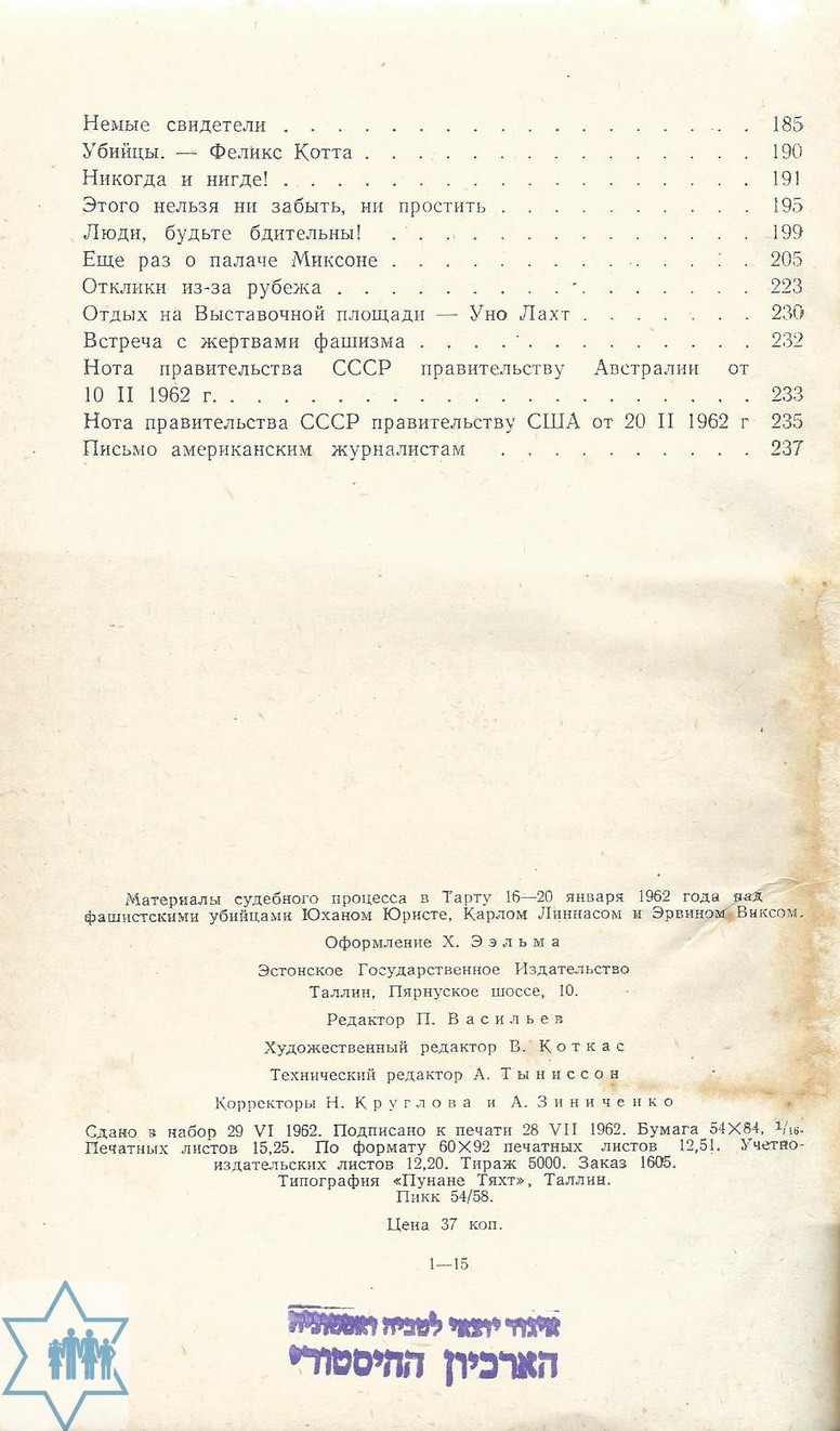 Pages 244 Place Tallinn Year 1962 Archive 225 Language Russian Author in original language Лемик Карл, Мартисон Эрвин Name of book in original language 1200. Материалы судебного процесса над фашистскими убийцами.