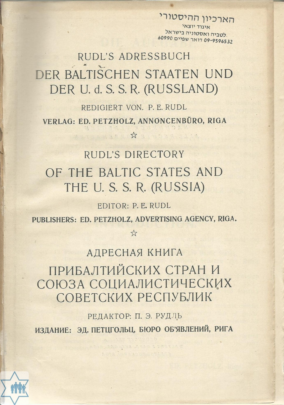 Book ArchiveDirectory of the Baltic States and U.S.S.R (Russia) / Rudl
