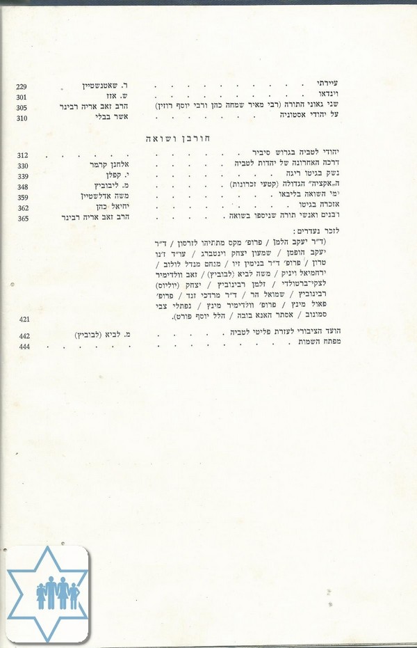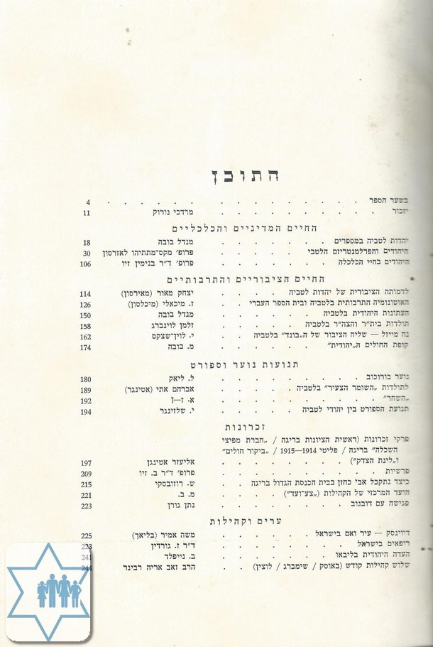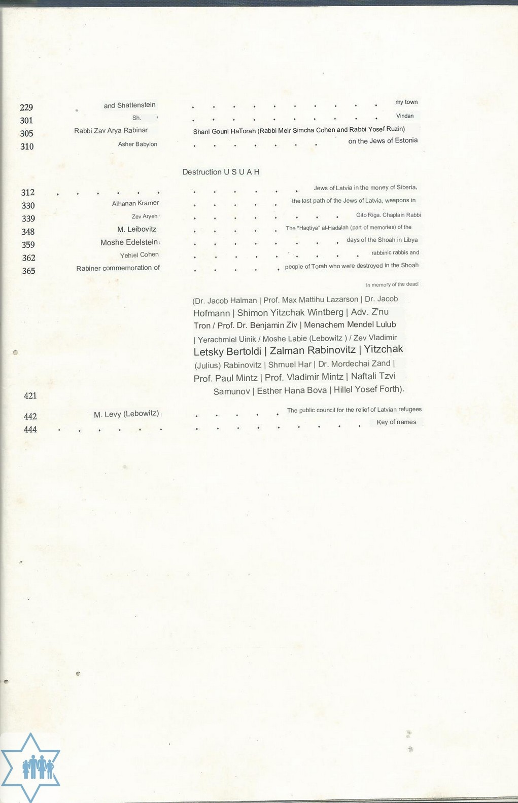 Pages 458 Place Tel Aviv Year 1953 Archive 31 ; 32 Language Hebrew Author in original language אליאב ב., בובה מ, קרמר א. Name of book in original language יהדות לטביה ספר-זכרון Comments Yizkor book