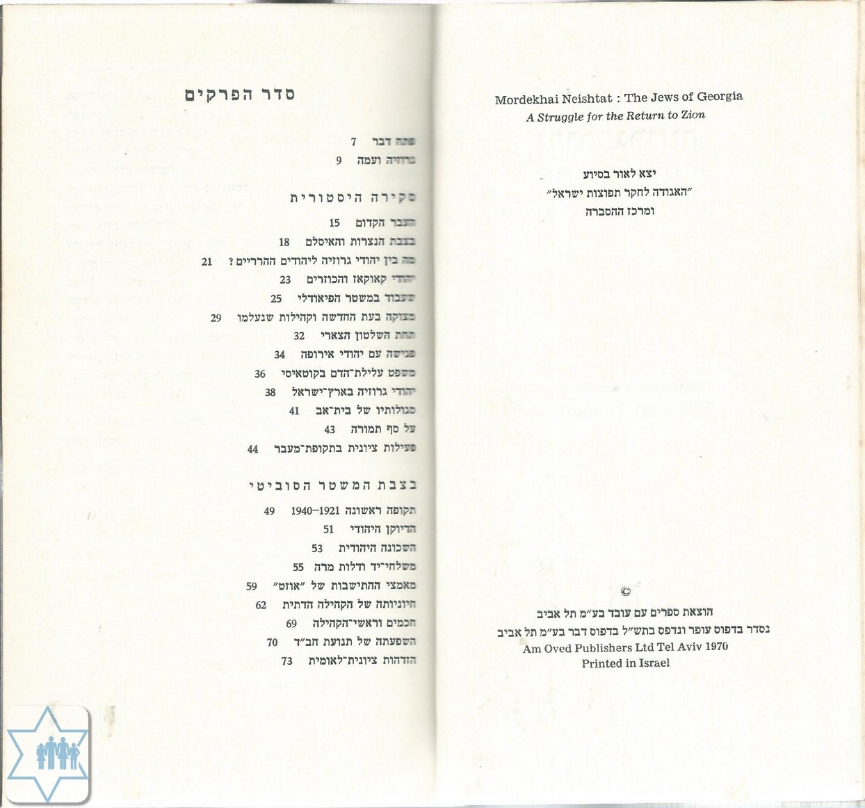 Pages 148 Place Tel Aviv Year 1970 Archive 331 Language Hebrew Author in original language ניישטט מרדכי Name of book in original language יהודי גרוזיה