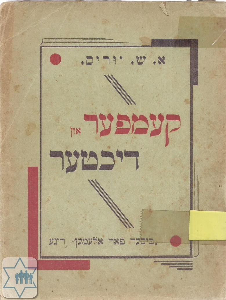 Pages 225 Place Riga Year 1931 Archive 340 Language Yiddish Author in original language יוריס א. ש. Name of book in original language קעמפער און דיכטער