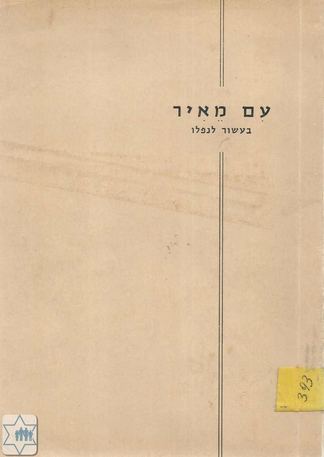 Pages 183 Place Tel Aviv Year 1964 Archive 393 Language Hebrew Name of book in original language מאיר חפץ בעשור לנפילתו Comments In memory of