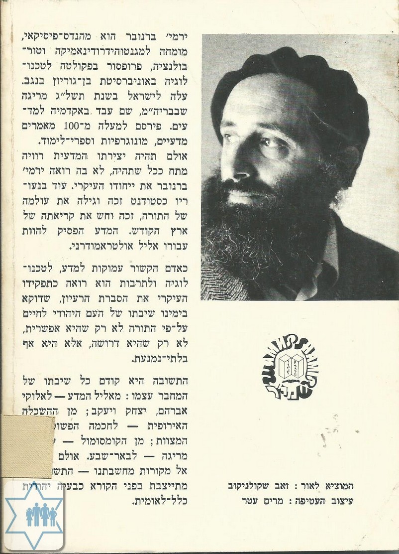 Pages 152 Place Jerusalem Year 1979 Archive 414 Language Hebrew Author in original language ברנובר ירמי Name of book in original language התשובה