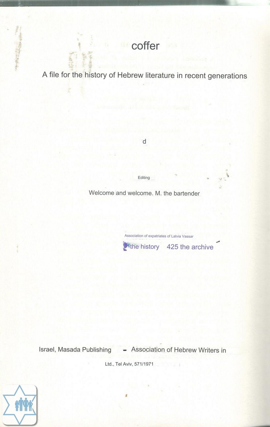 Pages 289 Place Tel Aviv Year 1971 Archive 425 Language Hebrew Author in original language קרוא ברוך Name of book in original language גנזים