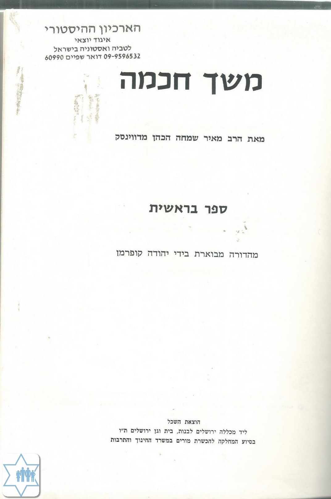 Name of book in original language משך חכמה ספר בראשית
