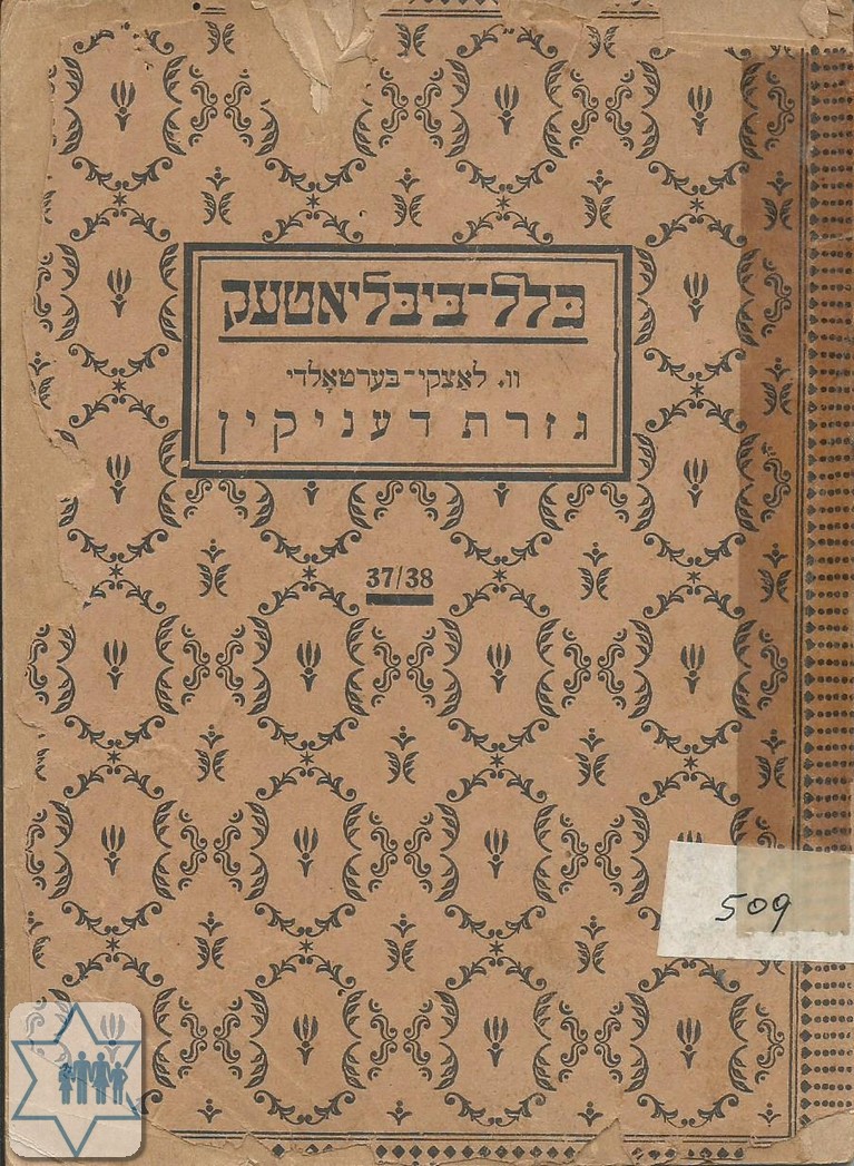 Pages 63 Place Berlin Year 1922 Archive 509 Language Yiddish Author in original language לאצקי-בערטאלדי Name of book in original language גזרת דעניקין