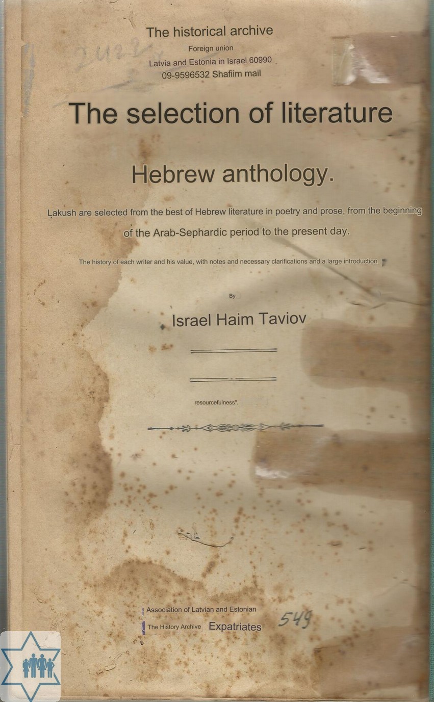 Place Varsaw Year Archive 549 Language Hebrew Author in original language טביוב י. ח. Name of book in original language מבחר הספרות