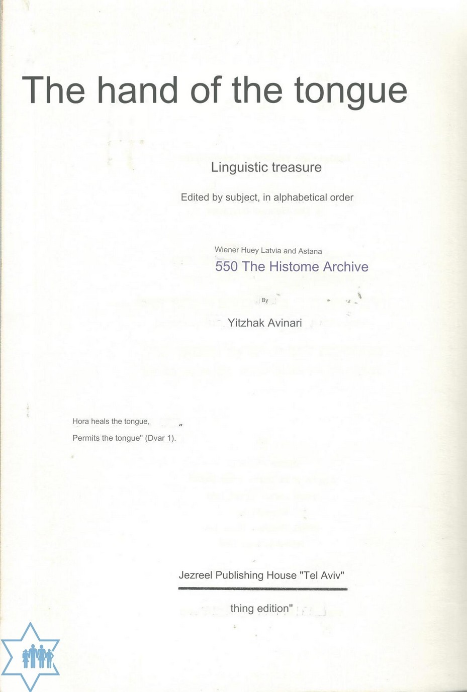 Pages 624 Place Tel Aviv Year 1964 Archive 550 Language Hebrew Author in original language אבינרי יצחק Name of book in original language יד הלשון