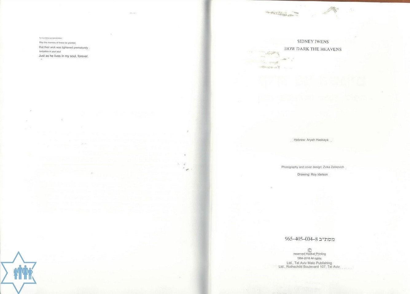 Pages 262 Place Tel Aviv Year 1994 Archive 583 , 586 , 616 , 642 , 1307 , 1628 Language Hebrew Author in original language איוונס (איוונסקי) ישעיהו Name of book in original language קדרו פני השמים (1400 ימים בצבת האימה הנאצית)