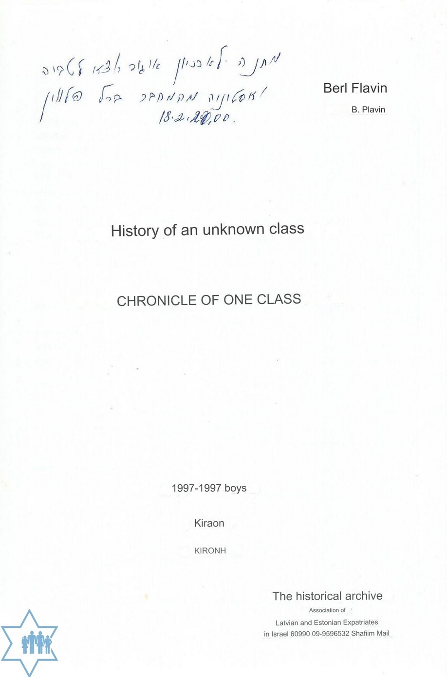 Pages 383 Place Kir'on Year 1997 Archive 617 Language Russian Author in original language Плавин Б. Name of book in original language Хроника одного класса