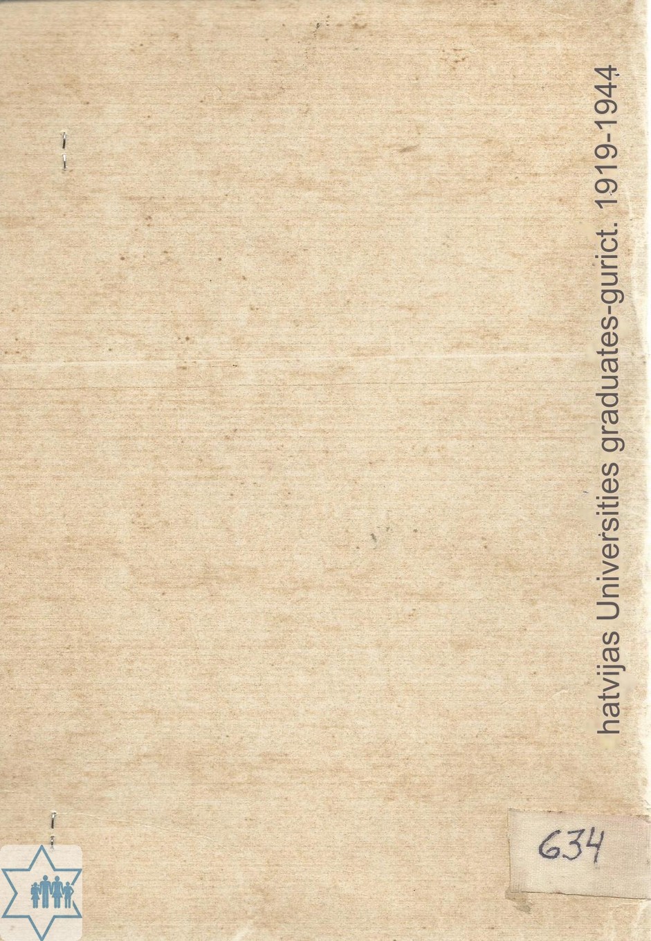 Pages 503 Place Riga Year 1999 Archive 634 Language Latvian Name of book in original language Latvijas Universitates Absolventi Juristi Comments 1919 – 1944