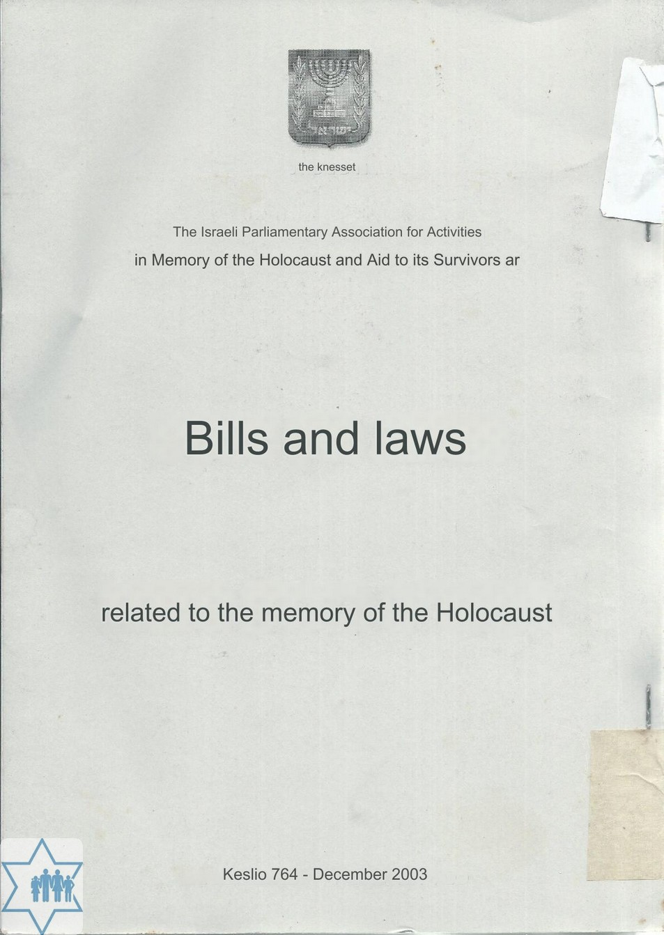 Place Jerusalem Year 2003 Archive 670 Language Hebrew Name of book in original language הצעות חוק וחוקים הקשורית בזכרון השואה