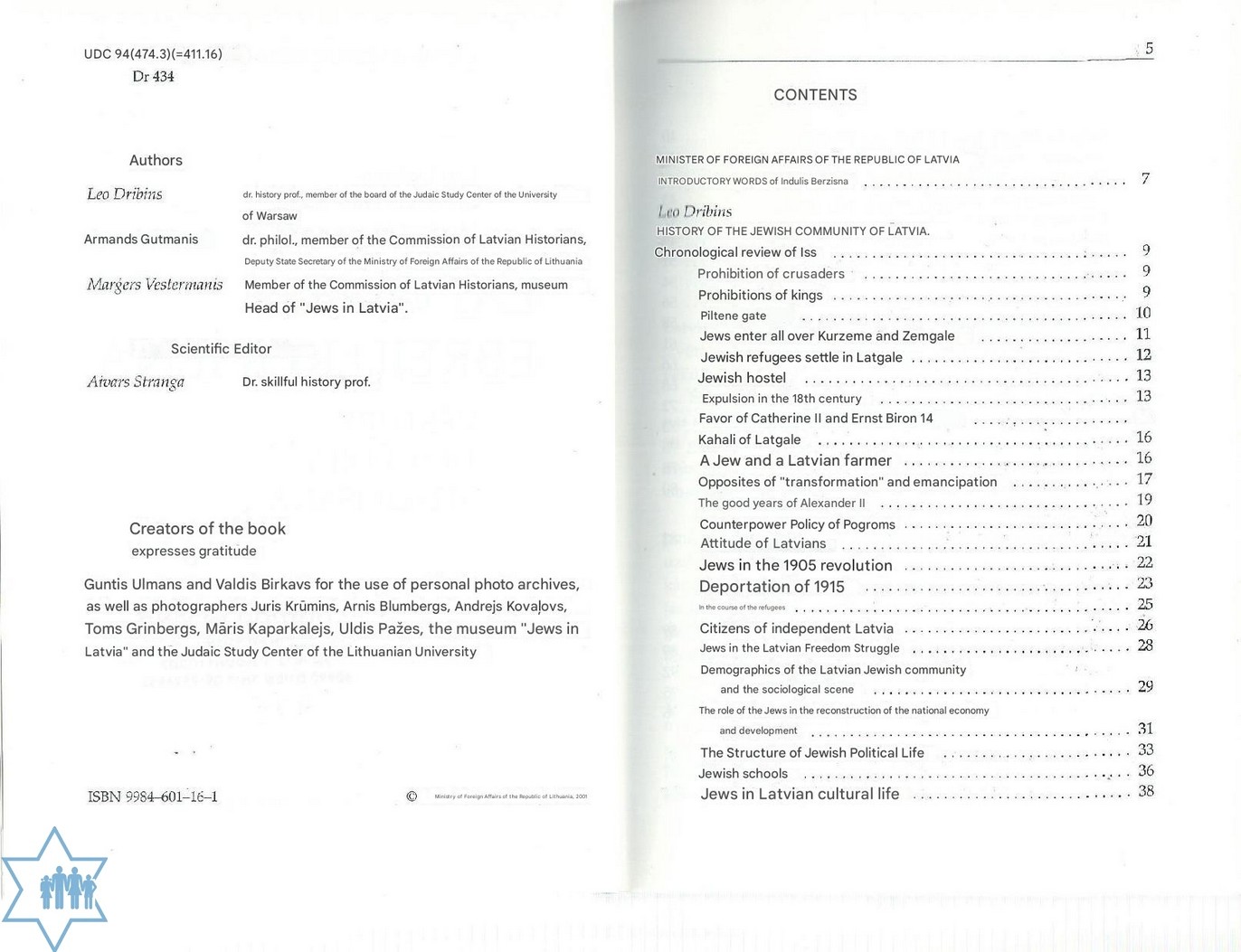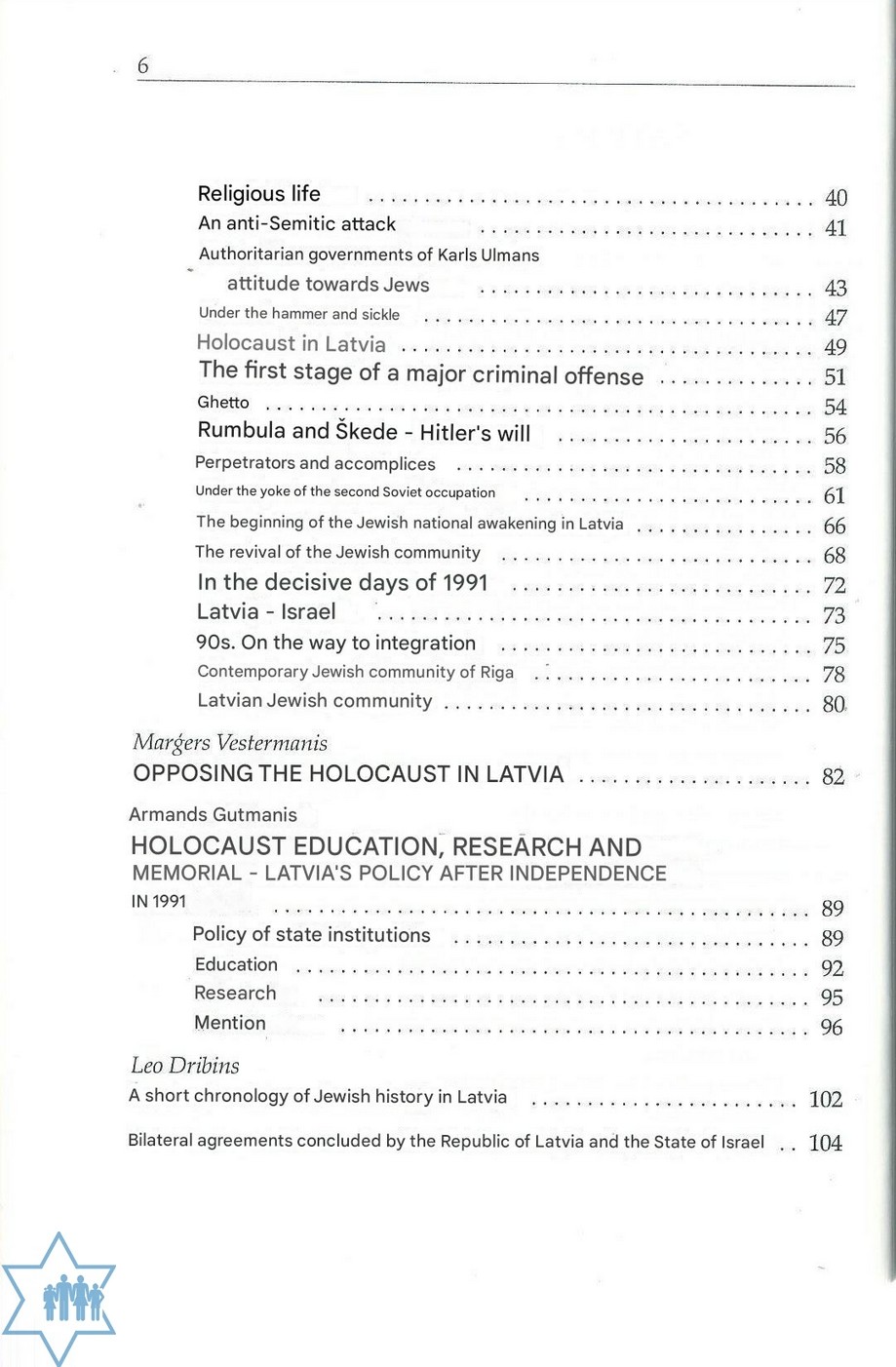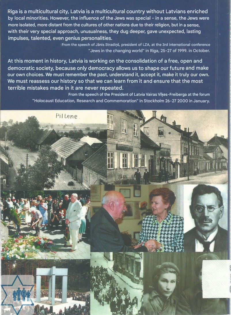Pages 104 Place Riga Year 2001 Archive 778 ; 975 ; 1336 Language Latvian Author in original language Dribis L., Gutmanis A., Vestermanis M. Name of book in original language Latvijas ebreju kopiena