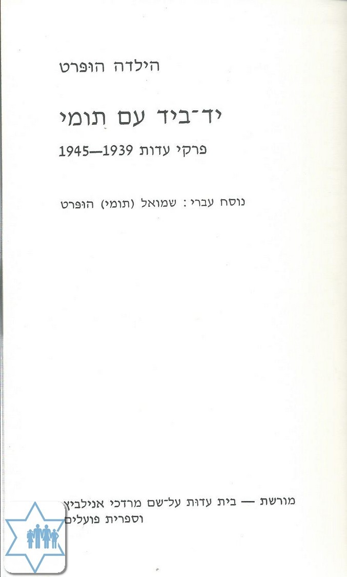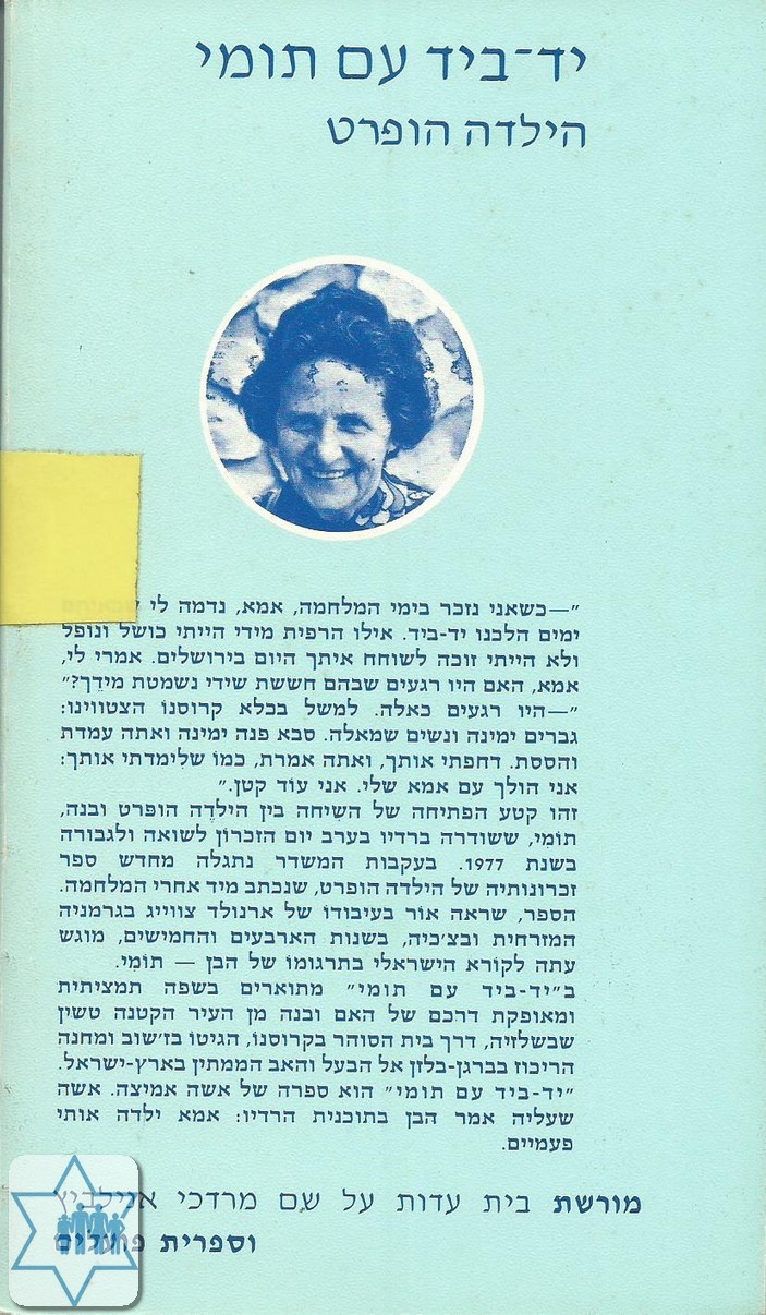 Pages 126 Place Year 1977 Archive 82 Language Hebrew Author in original language הופרט הילדה Name of book in original language יד-ביד עם תומי
