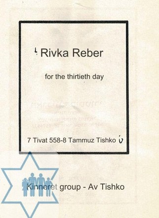 Pages 20 Place K.Kineret Year תשכ"ו Archive 823 Language Hebrew Name of book in original language רבקה רבר