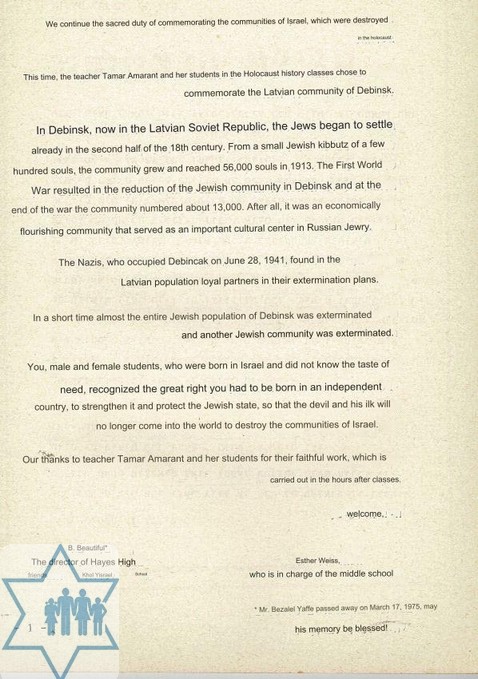 לזכר קהילת דבינסק – In memory of the Dvinsk community