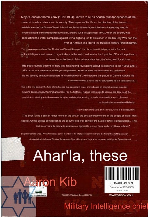 Pages 743 Place Israel Year 2013 Archive 910 Language Hebrew Author in original language גלבוע עמוס Name of book in original language מר מודיעין – אהרילה, אלוף אהרון יריב, ראש אה"ן