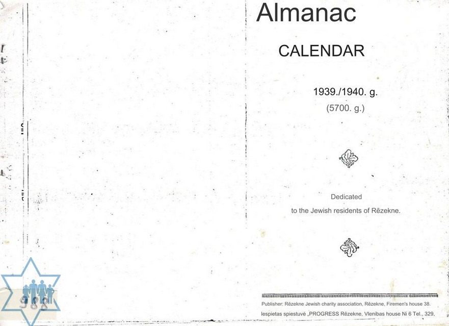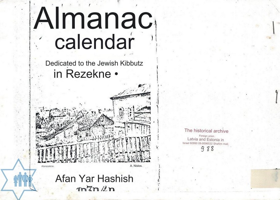 Archive 988 Language Yiddish Name of book in original language אלמאנאך קאלענדאר. געווידמעט דעם יידישן קיבוץ אין רעזעקנע